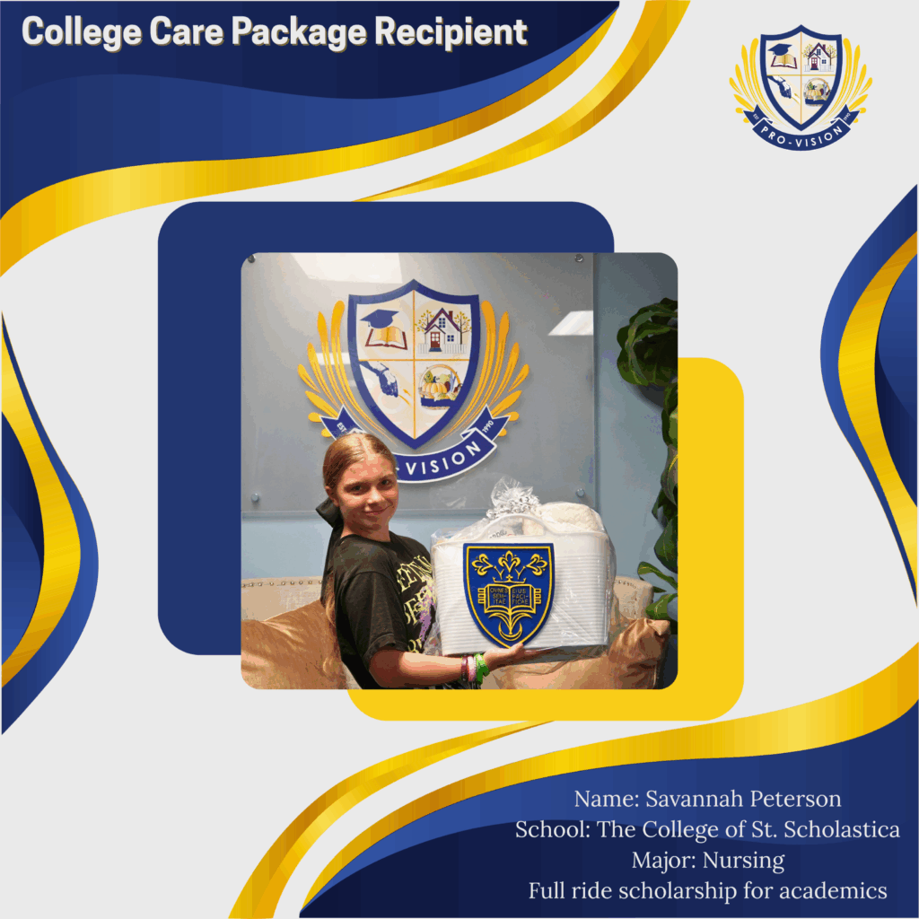 Dorm room essentials, a laptop, school supplies and a gift card for food and gas